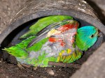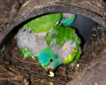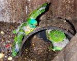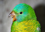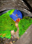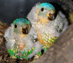 - Pic 33. 8 weeks – Red colour emerging on black beak. Scaly breast; aqua head blending to Scaly’s apple-green.
